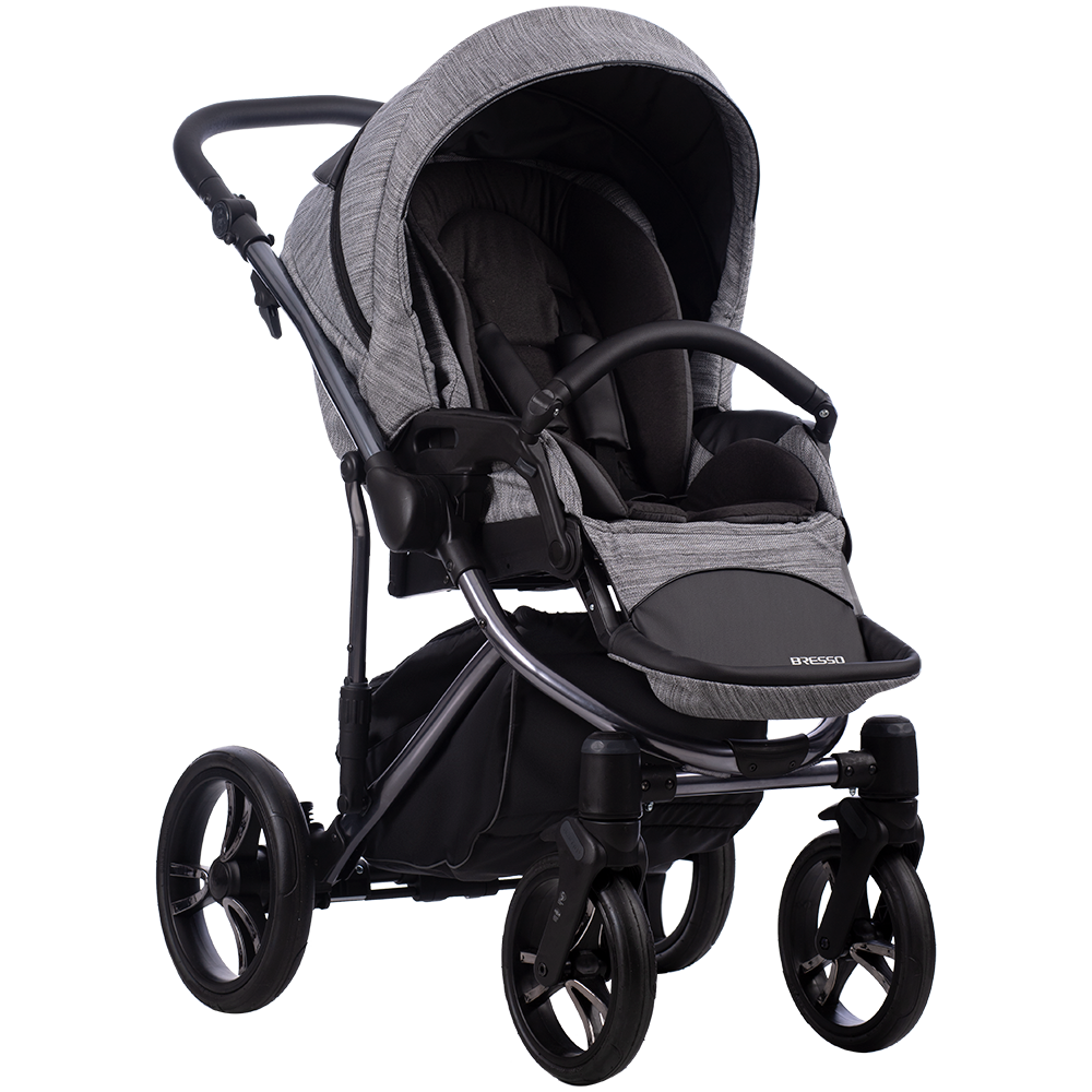 Spacerówka wózka Bresso Premium Class również przeszła znaczące udoskonalenia. System szybkiego wypinania siedziska pozwala na montaż przodem lub tyłem do kierunku jazdy. Auto-blokada regulacji budki gwarantuje wygodę w codziennym użytkowaniu. Barierkę można wypiąć w prosty sposób, co ułatwia układanie dziecka w spacerówce. Dodatkowo zastosowano dwustronny materacyk, z którego jedna strona wykonana jest z miękkiego materiału idealnego na lato. Wszystko to sprawia, że spacerówka jest praktyczna i komfortowa dla malucha.