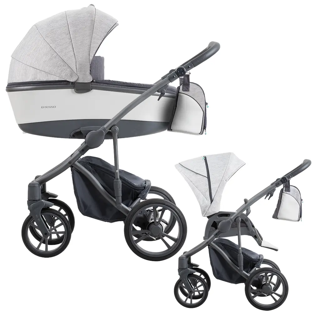 Bebetto Bresso to wózek typu 2w1, który rośnie razem z dzieckiem. W zestawie znajduje się zarówno gondola dla niemowląt, jak i część spacerowa dla starszych dzieci. To uniwersalne rozwiązanie, które pozwala zaoszczędzić czas i pieniądze przy zachowaniu najwyższego komfortu dla malucha.