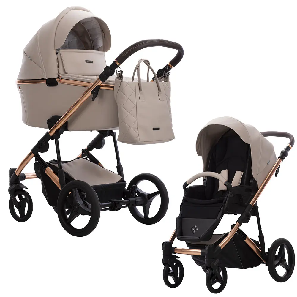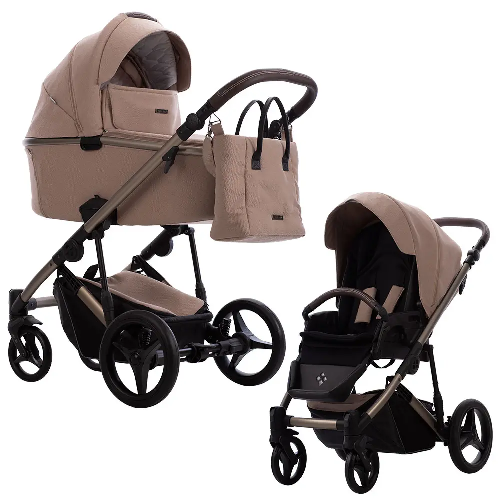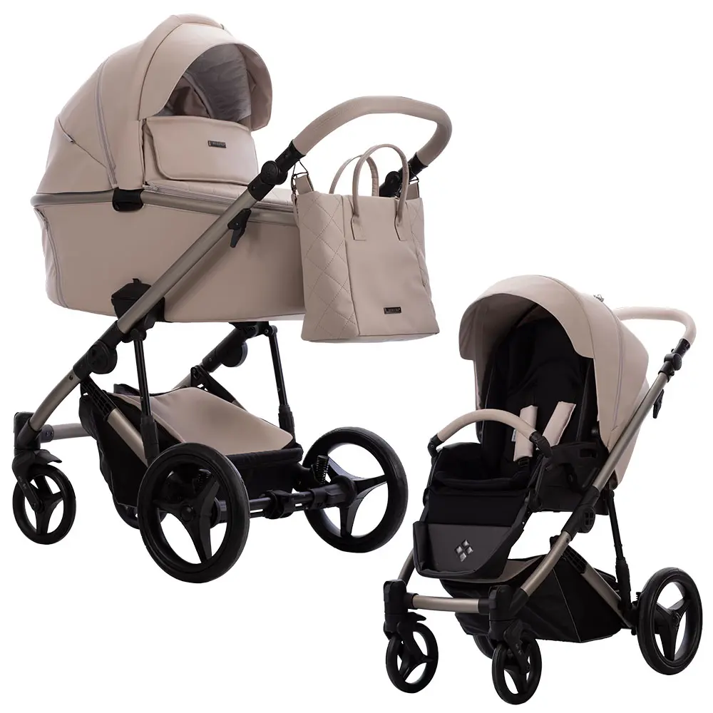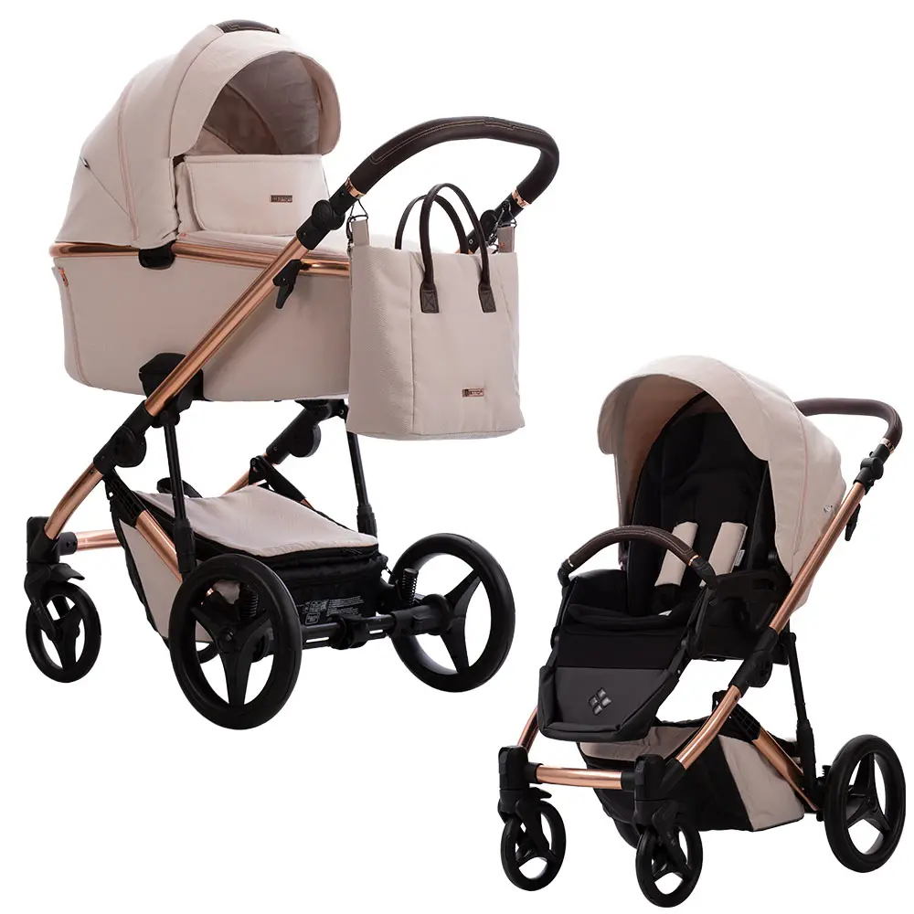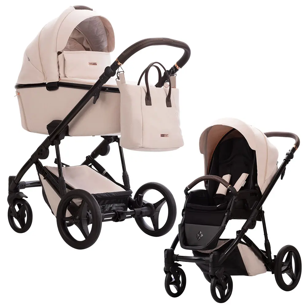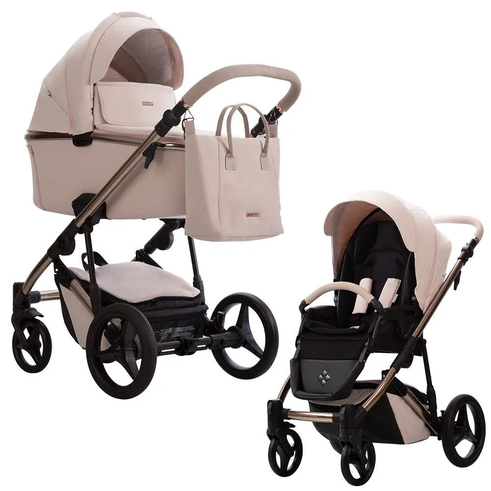 Najnowsza wersja kolorystyczna Biscotti to kwintesencja elegancji i luksusu. Szampański stelaż doskonale komponuje się z jasną, biszkoptową tapicerką. Połączenie subtelnych tonów sprawia, że wózek prezentuje się niezwykle nowocześnie i szykownie. Detale takie jak hafty czy przeszycia podkreślają wyjątkowość tej edycji.