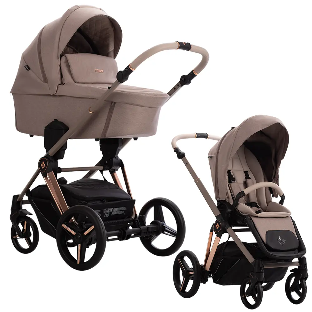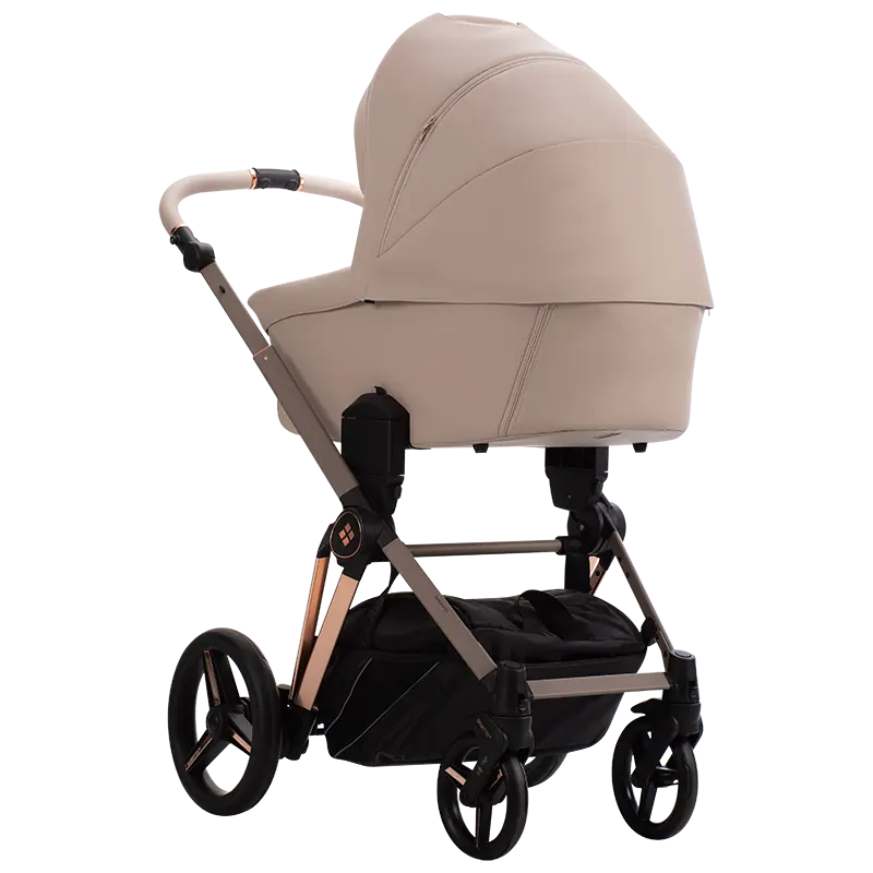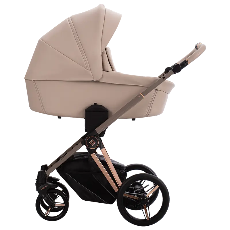 Bebetto Monti Premium Class zachwyca od pierwszego spojrzenia. To wózek dziecięcy klasy premium, który przyciąga uwagę subtelnymi, ale wyrafinowanymi detalami – jak np. elementy konstrukcji w kolorze miedzi, które dodają całości elegancji i luksusu. Dostępność dwóch wariantów – z tkaniny lub ekoskóry (PRO) – pozwala dopasować model do własnych preferencji estetycznych i praktycznych. Monti Premium Class to nie tylko design, ale przede wszystkim przemyślana konstrukcja i wygoda użytkowania.