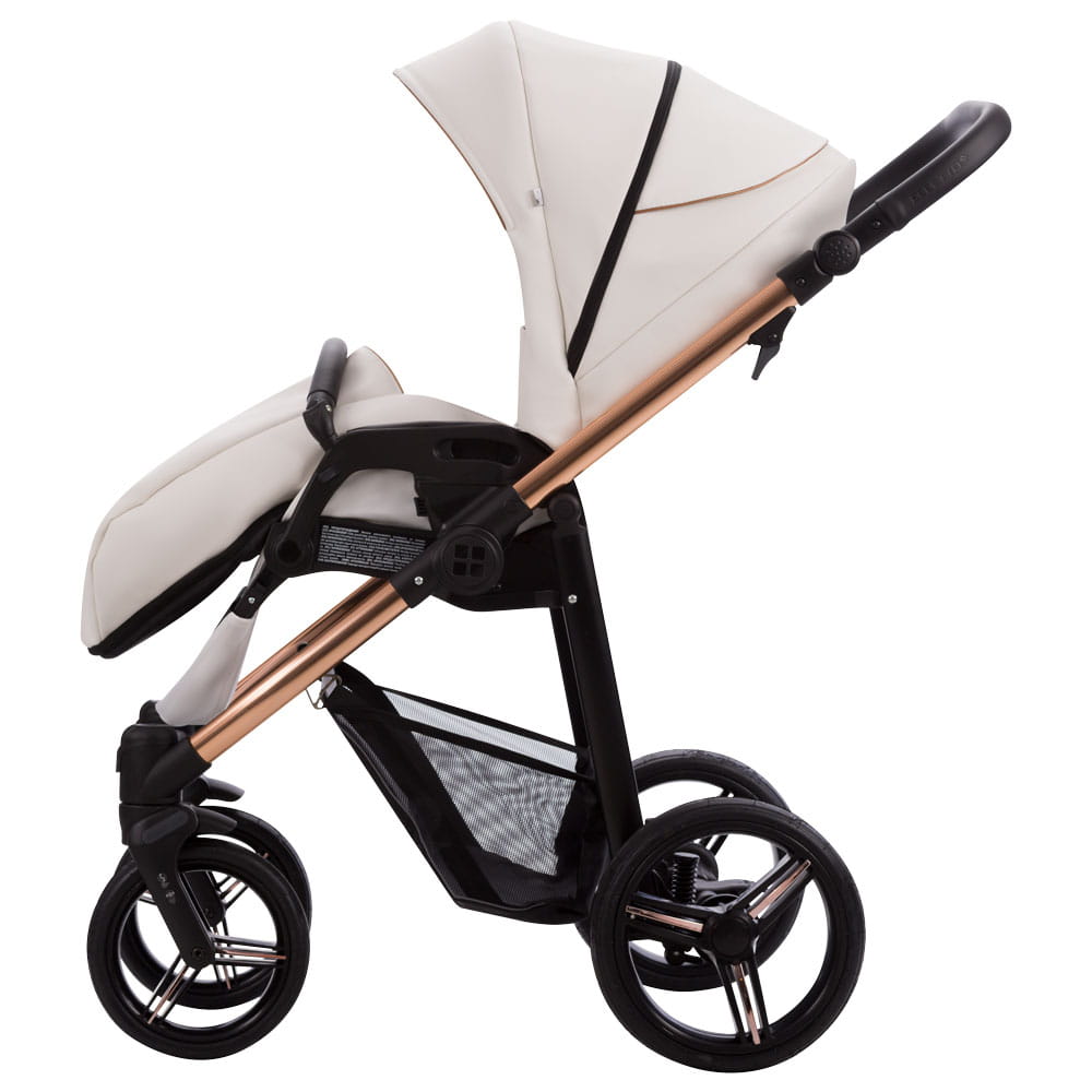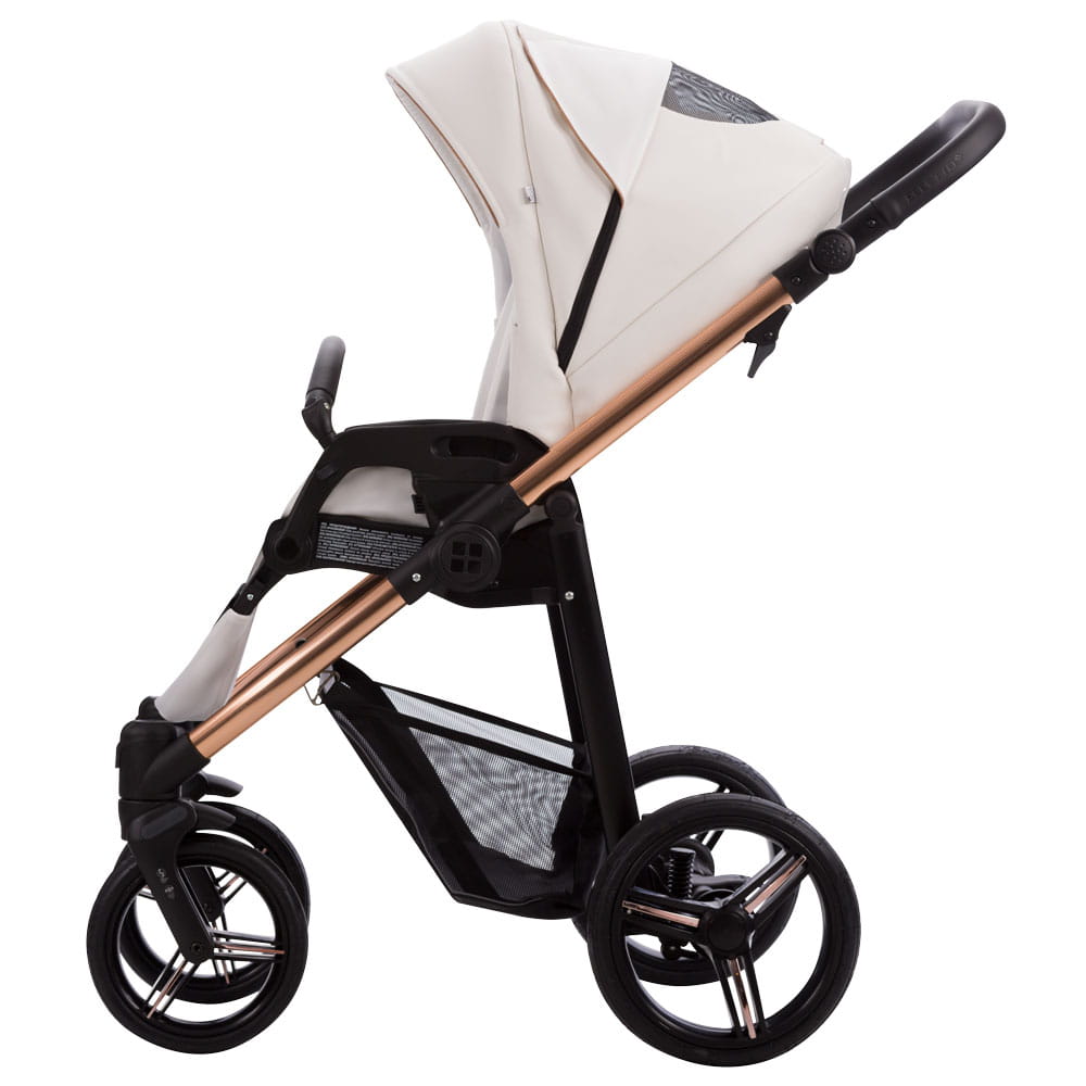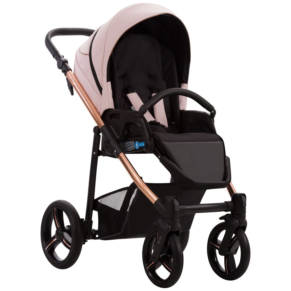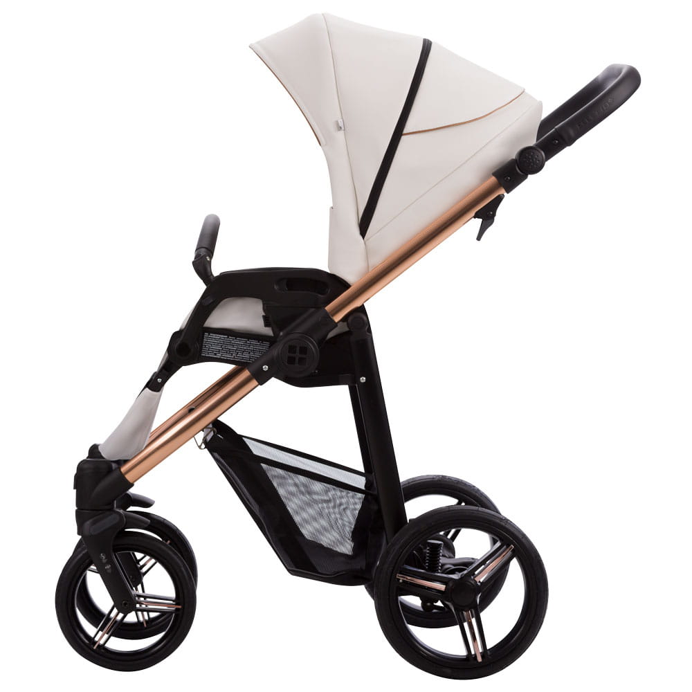 Szukasz spacerówki, która zapewni dziecku komfort w każdych warunkach pogodowych? Właśnie takim modelem jest Bebetto Nico Estilo Pro. Zamiast zwykłego pokrowca znajdziesz w zestawie praktyczny śpiworek, który pozwala w kilka sekund otulić malucha i przygotować go do spaceru. Dzięki temu codzienne wyjścia stają się szybkie i wygodne. Wózek wyróżnia się także eleganckim wyglądem – połączenie białej lub czarnej eko-skóry z połyskującą konstrukcją w kolorze miedzi sprawia, że prezentuje się niezwykle stylowo. Całość dopełniają starannie wykonane detale, które podkreślają luksusowy charakter modelu.