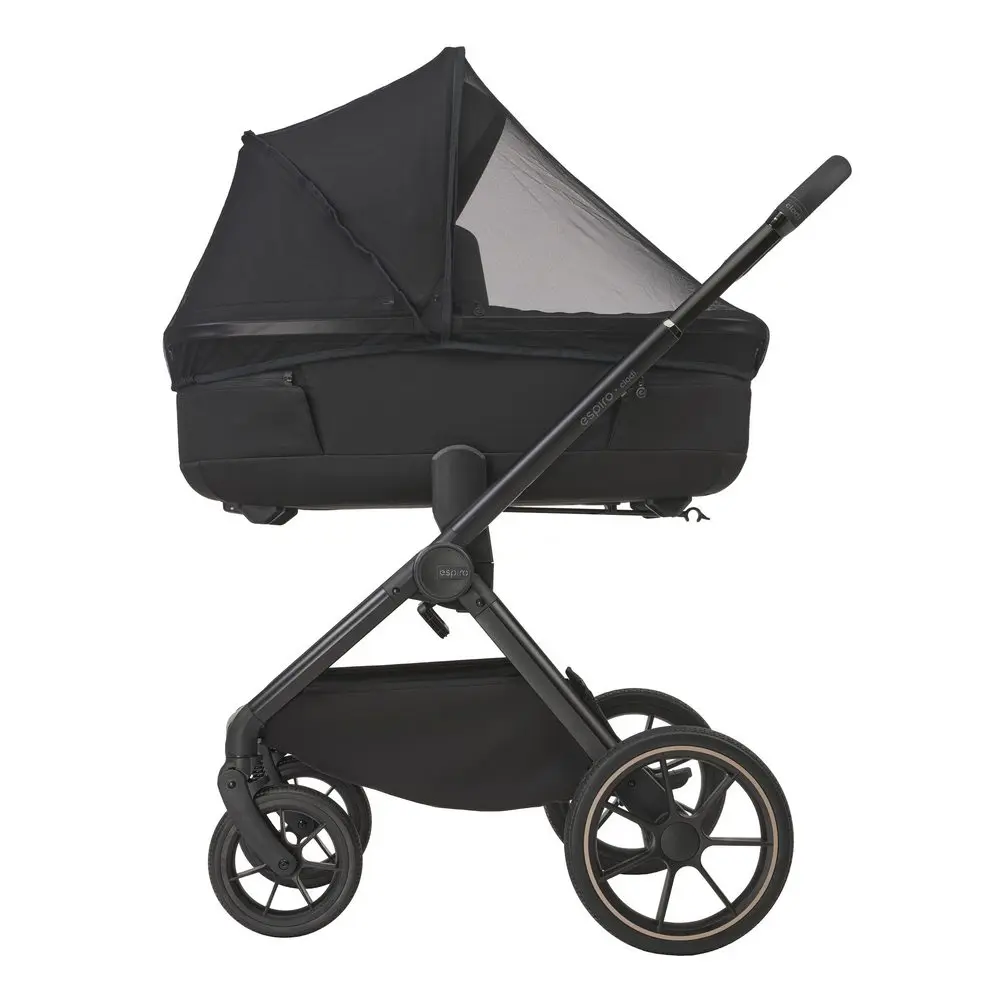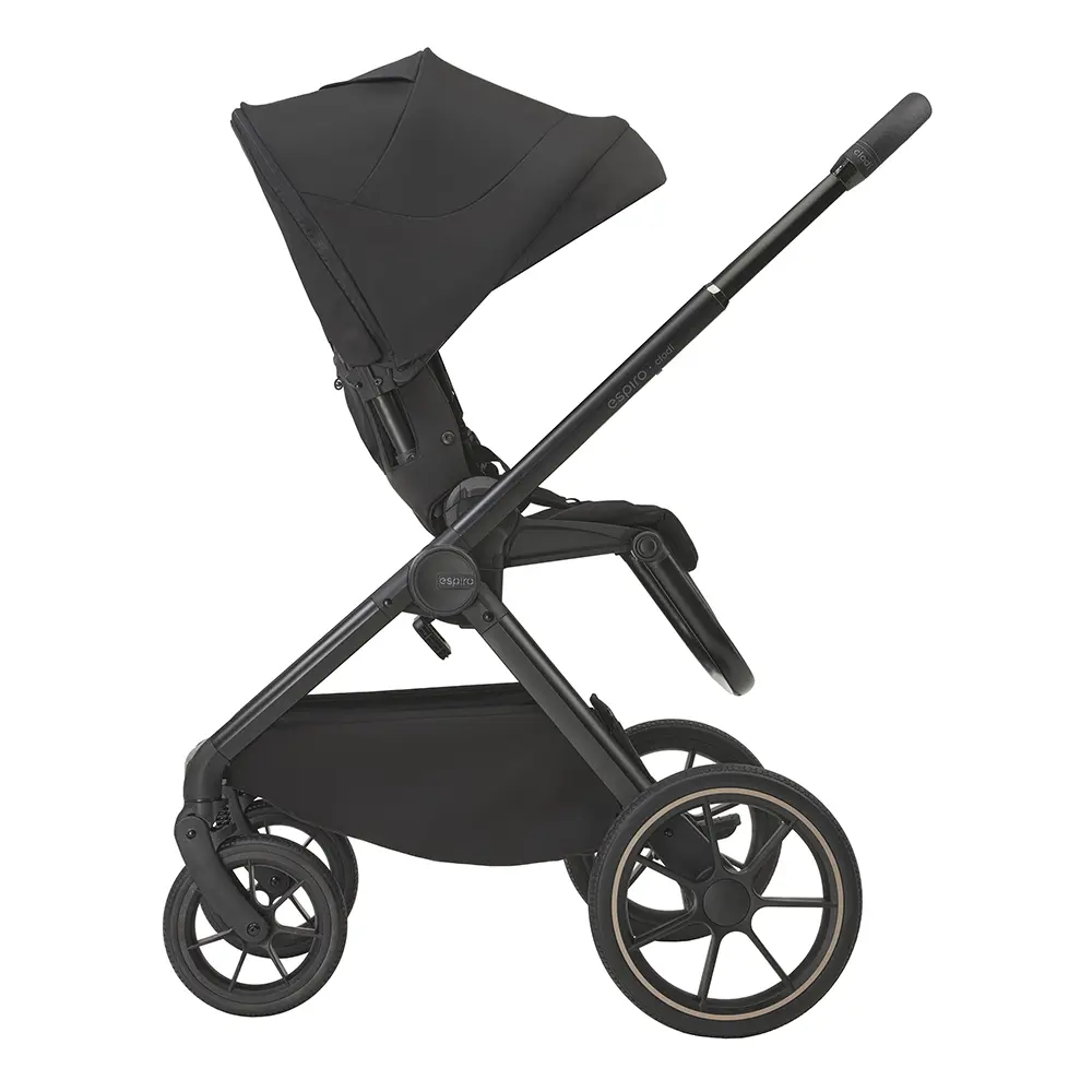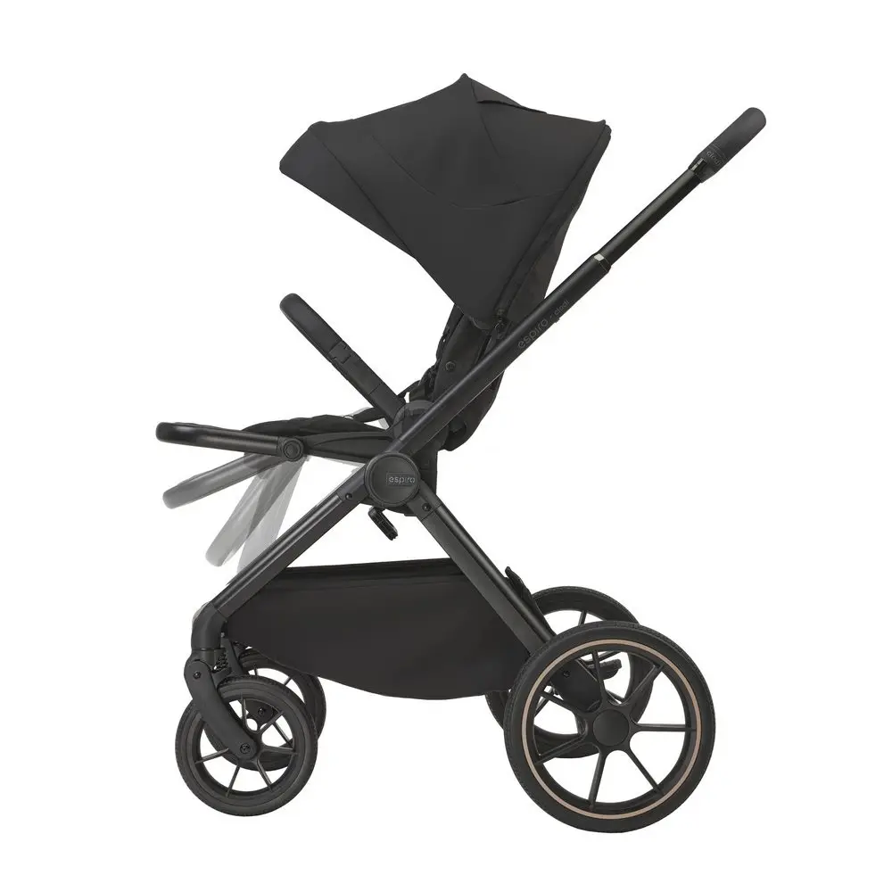 Spacerówka w modelu Espiro Clodi została zaprojektowana z myślą o maksymalnej wygodzie dziecka. Dwustronne siedzisko można zamontować przodem lub tyłem do kierunku jazdy, a 3-stopniowa regulacja oparcia umożliwia pozycję siedzącą, półleżącą i całkowicie płaską do snu. Budka z podwójną wentylacją i regulacją wysokości chroni przed słońcem i zapewnia dopływ świeżego powietrza, jednocześnie umożliwiając obserwację dziecka. Komfort zwiększa także 5-stopniowa regulacja podnóżka, którą można obsłużyć jedną ręką.