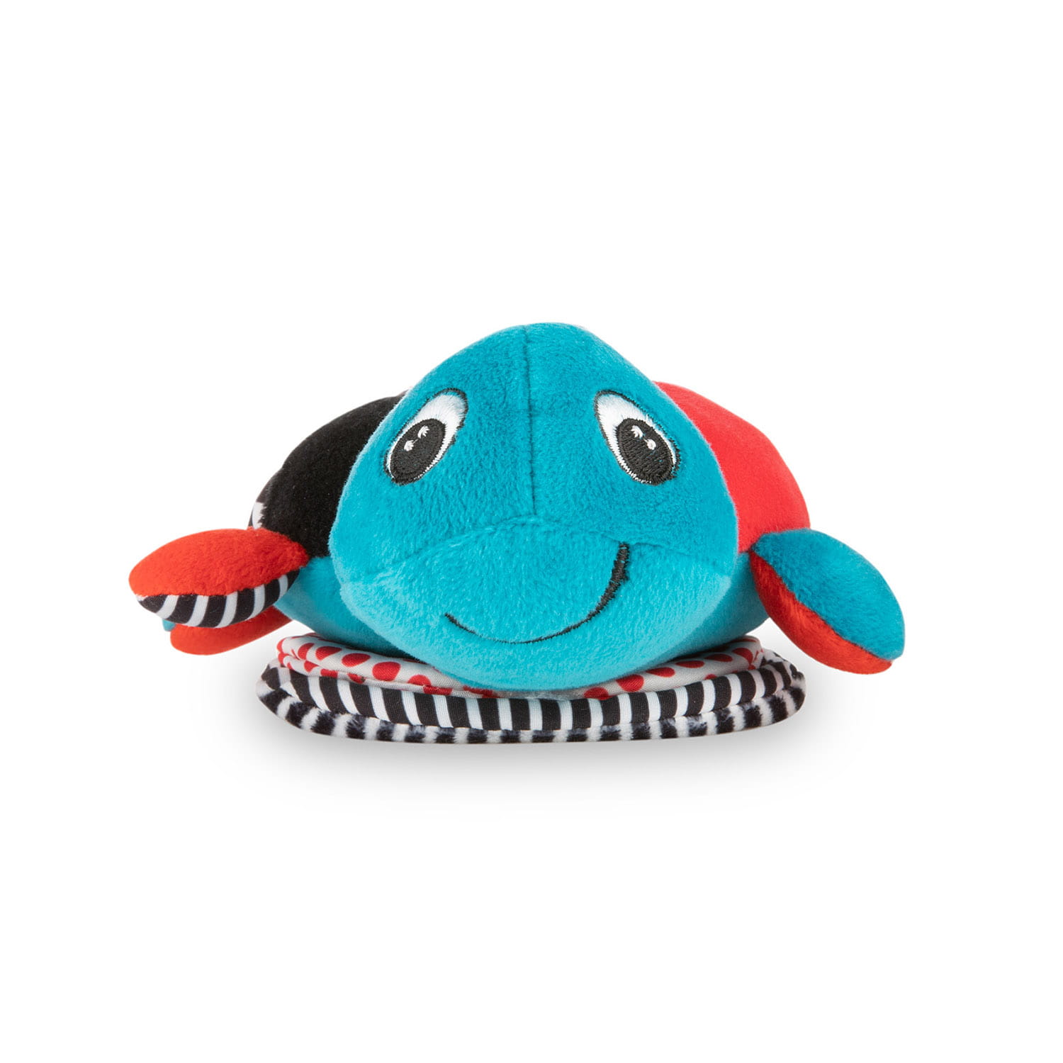 Kolorowa zabawka ŻÓŁW MORSKI z miękkiego i miłego w dotyku materiału zachęci do zabawy każdego malca. Posiada elementy interaktywne, które doskonale stymulują rozwój koordynacji wzrokowo-słuchowej i motorycznej dziecka. Żółwik wyposażony został w grzechotkę, telefon, lusterko i pozytywkę. Dodatkową atrakcją dla dziecka są elementy szeleszczące i migające światełka. Zabawka posiada uniwersalny zaczep do mocowania do wózka lub łóżeczka. Przeznaczona jest dla dzieci w wieku 0m+. W opakowaniu 1 sztuka.